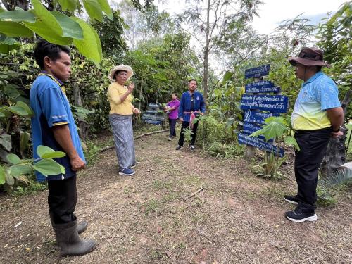 ในการนี้ผู้ตรวจราชการ มีข้อแนะนำเจ้าของแปลง ขอให้ปรับปรุงป้ายโคก หนอง นา ให้สวยงามอยู่เสมอ มีโลโก้กรมการพัฒนาชุมชน จัดทำฐานเรียนรู้อย่างน้อย 5 ฐาน มีป้ายแต่ละฐานชัดเจน จะทำสมุดเยี่ยม จัดทำสมุดรายรับ รายจ่ายครัวเรือน เพื่อแสดงให้เห็นรายได้ที่เกิดจากการทำโคก หนอง นา จัดทำทะเบียนต้นไม้ พันธุ์ไม้ในแปลงโคก หนอง นา ของตนเอง แต่ละแปลงจะต้องมีผลิตภัณฑ์ที่เป็น OTOP ได้