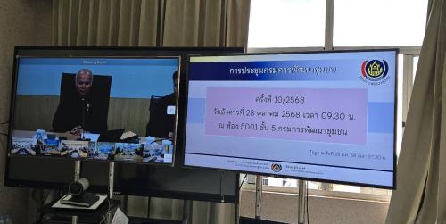 นายสุรศักดิ์ อักษรกุล อธิบดีกรมการพัฒนาชุมชน เป็นประธานการประชุมกรมการพัฒนาชุมชน ครั้งที่ 10/2568 โดยมีรองอธิบดี ผู้อำนวยการสำนัก/กอง พัฒนาการจังหวัด 76 จังหวัด และเจ้าหน้าที่ที่เกี่ยวข้อง เข้าร่วมประชุมทั้งในรูปแบบ Onsite และ Online ผ่านระบบ Video Conference (VCS)