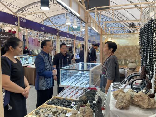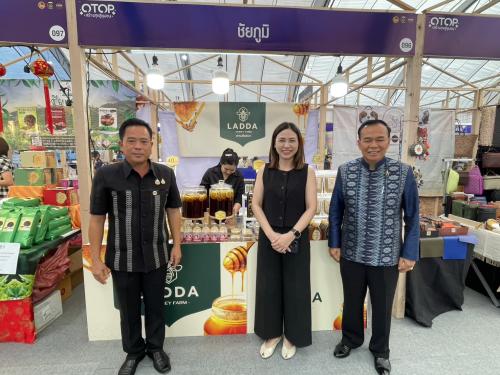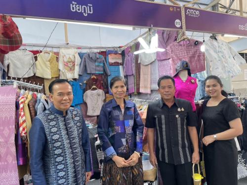 ในการนี้ ได้เยี่ยมให้กำลังใจผู้ผลิต ผู้ประกอบการ OTOP จังหวัดชัยภูมิ ที่เข้าร่วมจัดแสดงและจำหน่ายสินค้าจำนวน 4 กลุ่ม ได้แก่