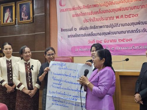 -เเบ่งกลุ่มจัดทำเเผนปฏิบัติการขับเคลื่อนกองทุนพัฒนาบทบาทสตรี