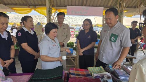 ในโอกาสนี้ ผู้ว่าราชการจังหวัดชัยภูมิ พร้อมด้วย นายกเหล่ากาชาดจังหวัดชัยภูมิ พร้อมคณะได้เยี่ยมชมและให้กำลังใจบูธผลิตภัณฑ์ชุมชน พร้อมสนับสนุนสินค้าของผู้ประกอบการในพื้นที่