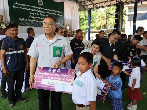 2. มอบทุนการศึกษาสนับสนุนครัวเรือนยากจน ผู้ด้อยโอกาส และผู้ยากไร้ จากเครือข่ายกองทุนหมู่บ้านอำเภอภูเขียว จำนวน 5 ทุน ๆ ละ 1,000 บาท